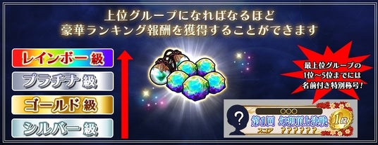 各グループのランキングで入賞することで多くの幻晶石や強化の雫のほか、虹のキャラメダルや称号などの賞品を獲得することができます。