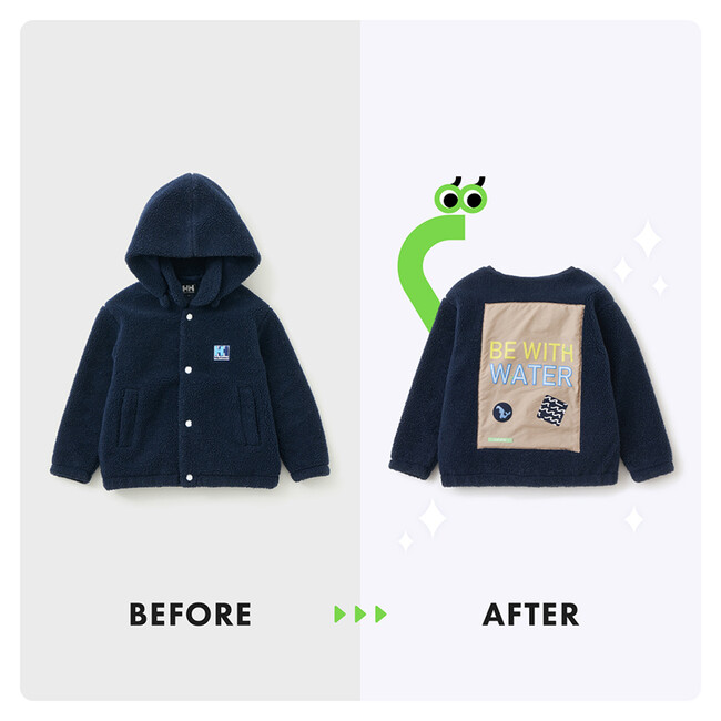 “手から、手へ。つないでいこう、未来のために。”をキャッチコピーに掲げる「GREEN BATON」は、お客様から買い取った製品を、ワッペンやあて布などでリペアする「リペアカスタム」や、製品から使用できるパーツを集め、再利用して新たな製品をつくる「アップサイクル」、原料として再利用する「原料リサイクル」を行い、「GREEN BATON」の新たな製品として販売するという取り組みです。これらのリセール製品には、バトンをイメージした"グリーンの引き手やネーム"が施され、他にはない『一点モノ』の製品となり、新たな価値が付加されます。