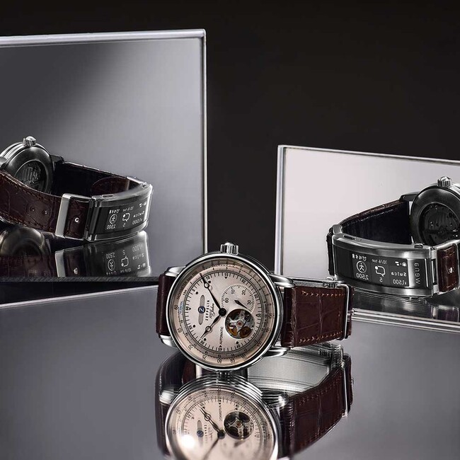 最新作のベースは「ツェッペリン」 のベストセラーの一つ、「100周年記念シリーズ日本限定オープンハートオートマティック」。カジュアルにもビジネスにも万能な“超絶コスパ”の機械式時計が、ソニーのスマートウォッチ「wena 3(ウェナスリー)」を搭載し、“実用的な嗜好品”に進化を遂げました。