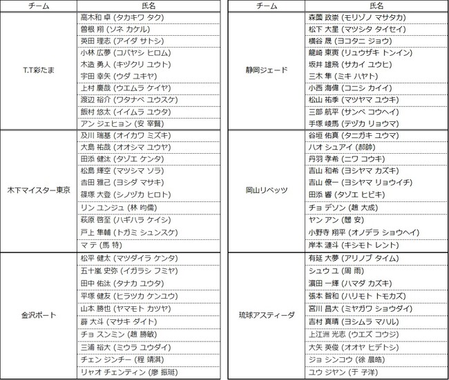 Tリーグでは、2023-2024シーズン 登録完了選手を以下の通りお知らせいたします。