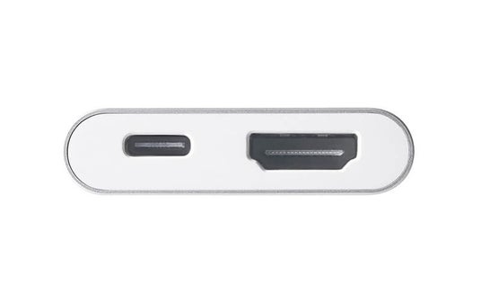 パソコンやスマートフォンのUSB Type-Cポートからの映像をHDMI出力に変換するだけでなく、同時に端末の充電もできる映像変換アダプターです。使い方はとてもシンプルで、端末と本製品をつなぎ、HDMIケーブル(別売)でディスプレイとつなぐだけ。すぐに大画面での美しい映像を楽しめます。4K出力に対応するほか、著作権保護技術(HDCP)にも対応しています。USB Type-CポートにAC充電器(別売)をつなげば、映像を見ながら端末を充電できます。USB Power Delivery対応で、最大95Wまでの充電が可能です。