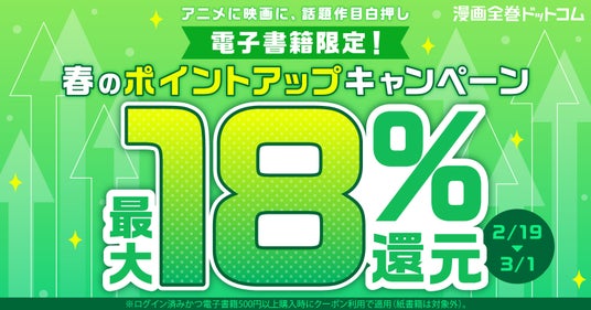 株式会社TORICO(本社:東京都千代田区、代表取締役社長:安藤拓郎)が運営する「漫画全巻ドットコム」にて、電子書籍対象ポイントアップクーポンを2026年3月1日(日)23時59分まで配布いたします。