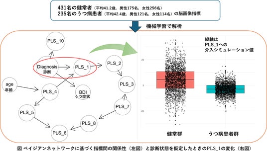 本研究では、広島大学と東京大学で集められた666名の大規模脳画像データ(https://bicr-resource.atr.jp/srpbsfc/)を用いて解析しました。対象の内訳は、431名の健常者(平均41.2歳、男性175名、女性256名)と235名のうつ病患者(平均42.4歳、男性121名、女性114名)でした。