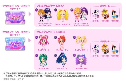 プレミアムガチャに『プリキュア』シリーズのキャラクターたちが登場!