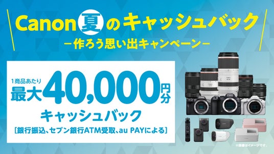キヤノンマーケティングジャパン株式会社(代表取締役社長:足立正親 以下キヤノンMJ)は、ミラーレスカメラ・ 交換レンズ・レンズ一体型カメラ・コンパクトフォトプリンターを対象に、最大4万円分をキャッシュバック(※1)する「Canon 夏のキャッシュバック―作ろう思い出キャンペーン―」を2024年6月21日より実施します。