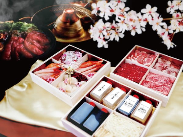 別海町が誇るホタテや牛肉などを中心に、しゃぶしゃぶ、すき焼きが贅沢に楽しめる三段重セット