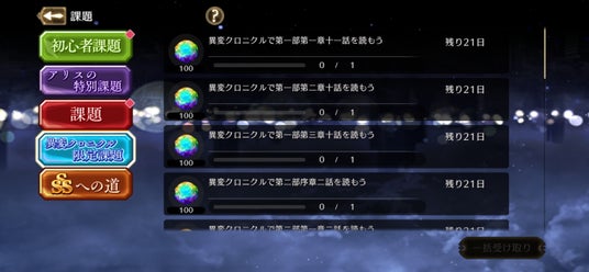 課題をすべて達成で幻晶石[無償]を合計3000個ゲット!