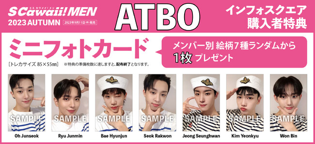 下記のURLからご予約いただいた方に、ATBOのミニフォトカードを7種からランダムで1枚プレゼント!