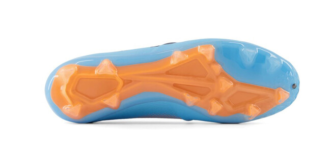 圧倒的な軽さが特長のストライカー向けスピードモデル「Furon Pro HG」がv7+にアップデート。極薄の軽量ニット素材をアッパー全体に採用し、視覚的にも軽量化が伝わるデザインに。ボールとの接地面をクリーンにする甲部キャノピー構造はそのままに、履き口から甲部分までHYPOKNIT(ハイポニット)素材を使用し、足入れのしやすさとフィット感も向上。軽量化した新アウトソールであらゆる環境で操作性と安定性を生み出します。