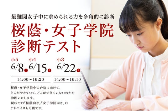 「桜蔭・女子学院診断テスト」は、桜蔭中・女子学院中を目指す小学3~5年生対象のイベントです。