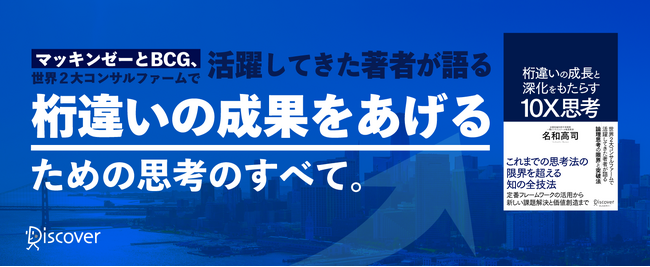 株式会社ディスカヴァー・トゥエンティワン(本社:東京都千代田区、取締役社長:谷口奈緒美)は2023年6月23日に『桁違いの成長と深化をもたらす 10X思考』(名和高司・著)を刊行しました。