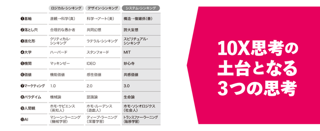 10X思考の土台となるのが、ロジカル・シンキング、デザイン・シンキング、そしてシステム・シンキングといった既存の思考法です。