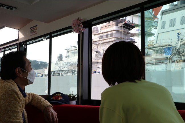 続いて遊覧船に乗り、海上自衛隊の護衛艦を間近に見ながら港巡りを楽しみます。