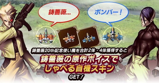 20周年を記念して、原作ボイスが付いた鋳薔薇の1P、2Pの自機スキンも登場中です。