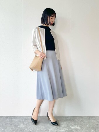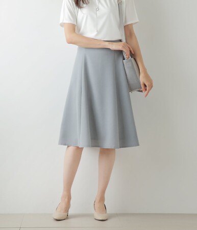 シンプルで着回しの効く膝丈スカート。程よく広がるフレアラインが上品なアイテムです。またご自宅で手洗いでき、汗ばむ季節もデイリーにお使いいただけます。
