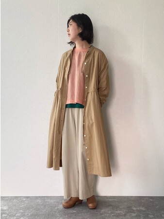 【5月】ドルマンニットを合わせてリラックス。麻混のストールをプラスすれば、爽やかさをキープしながら寒暖差にも対応。