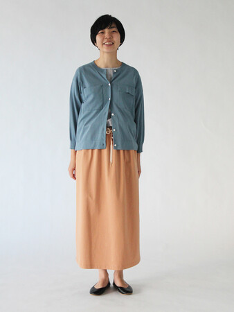 【6月】ジメジメとした梅雨時期には、リネン素材のブラウスが味方に。オレンジ×カーキが優しい表情を引き出してくれます。