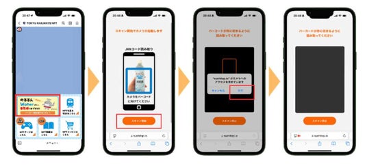 (4) カメラが起動したら、購入した「のるるんWater」のラベルに記載されたバーコードを読み取ります。