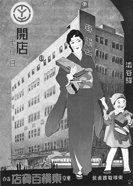 昭和九年に開店した、東京渋谷駅前の「東横百貨店」(のちの東急百貨店東横店)のポスター
