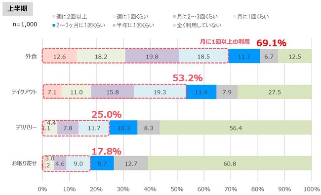 ・外食の利用頻度は、月に1回以上が上半期に比べて約6%増加。