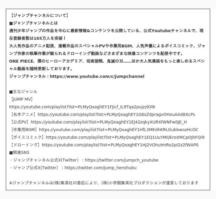 ・ジャンプチャンネル公式X(旧Twitter):https://twitter.com/jumpch_youtube