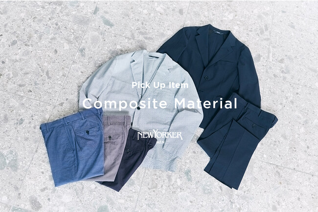 今シーズンのNEWYORKERでは、コットン×ポリエステルなどの「Composite Material(複合素材)」を使用したアイテムを数多く展開。今年もやってくる汗ばむ季節を快適に過ごすための、セットアップスーツやジャケット、ボトムが各種豊富に揃いました。