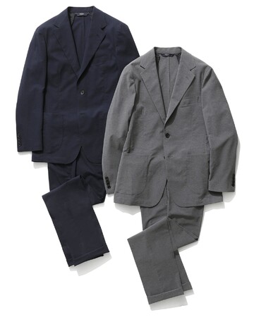 オフィスでのカジュアル化が進む中、程よく品を保つことができるNEWYORKERで人気の「セットアップスーツ」。今シーズンは、昨年発売し大好評だった同素材のジャケットから着想を得て、さらっとした生地感で軽快に着こなせるカジュアルライクなセットアップスーツにアップデートして展開します。素材には、軽やかなナイロンとハリコシのあるポリエステル、そして適度に伸縮性のあるポリウレタンの混紡素材を使用しているため、着心地もケアも簡単なアイテム仕上がりました。着心地の良さはもちろんのこと、オンオフで着用できる汎用性や、春夏に対応した機能性などが備わったこだわりのセットアップです。使い勝手の良いグレー、ネイビーの2色展開。