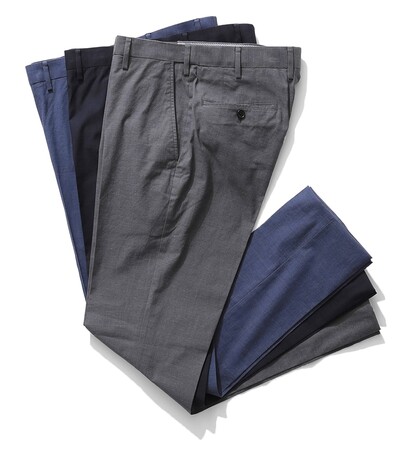 ストレッチや吸水速乾性、ウォッシャブルといったバラエティ豊かな機能性ボトムを数多く展開しているNEWYORKER。今シーズンは、夏の新定番として人気のある「キシリッシュドビークロスボトム」がモデルを一新して登場しました。接触冷感と吸水速乾機能を兼ね備えたドビー柄のボトムは、素材にコットン・ポリエステル・ポリウレタンを使用。今シーズンよりストレッチ機能もプラスすることで、より穿きやすいアイテムにアップデートしました。春夏らしい発色のきれいなサックス、ネイビー、ホワイト/ブラックの3色展開。春夏シーズンに重宝する機能性を備え、カジュアルからビジネスまで幅広いスタイルに対応します。こちらのボトムも前述した「カミーチャジャケット」と同様*【COOL COMFORT】コレクションのアイテムです。