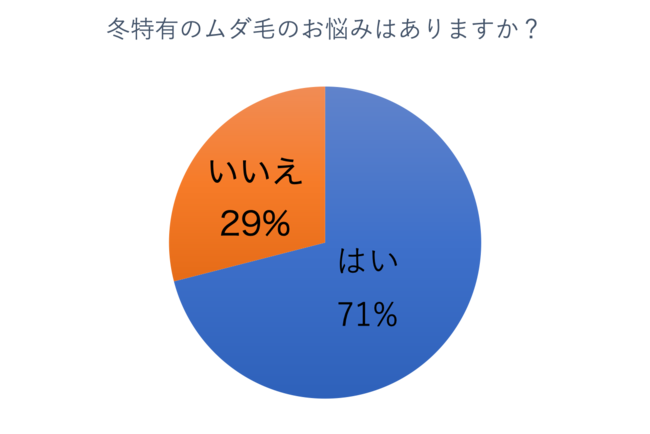 12月に入り冬本番となってきた今日この頃。気温が下がり空気も急激に乾燥する中、実はお肌トラブルが非常に多くなる季節でもあるのをご存知ですか?ニットやセーターなど厚着をする機会が増える為、ムダ毛ケアを見落としがちな方が多いかと思いますが、実は意外と見られている冬のムダ毛、女性のみなさんがどのようなお悩みを抱えているか調査を実施しました。