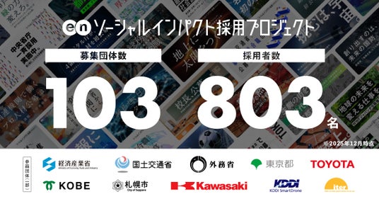 - 『ソーシャルインパクト採用プロジェクト』、総支援団体数が100団体、累計採用決定数は800名に。