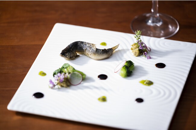 長野県飯田産鮎のコンフィ 小布施丸ナスのソテーエピスの香り