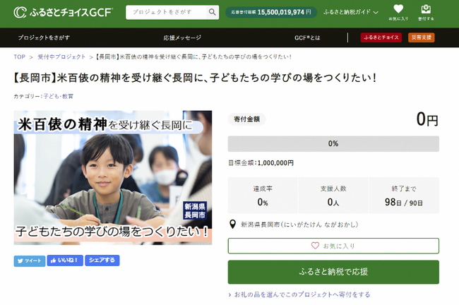 ◆プロジェクト名: 【長岡市】米百俵の精神を受け継ぐ長岡に、子どもたちの学びの場をつくりたい!