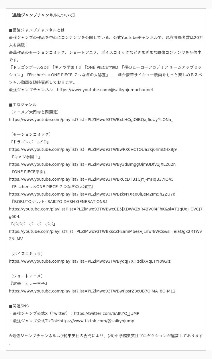 ・最強ジャンプ公式X(Twitter):https://twitter.com/SAIKYO_JUMP