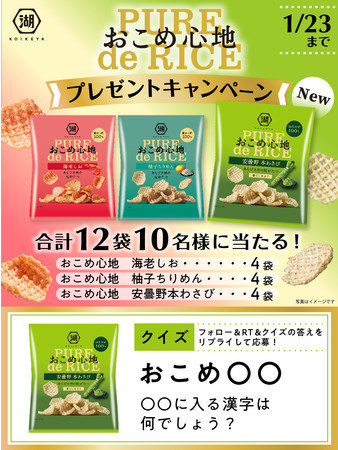 「おこめ心地 安曇野本わさび」の発売を記念して、クイズに答えて簡単に応募ができるプレゼントキャンペーンを実施します。抽選で10名様に、「おこめ心地」全3種の特別セットのプレゼントをご用意しておりますので、この機会にぜひご応募ください。