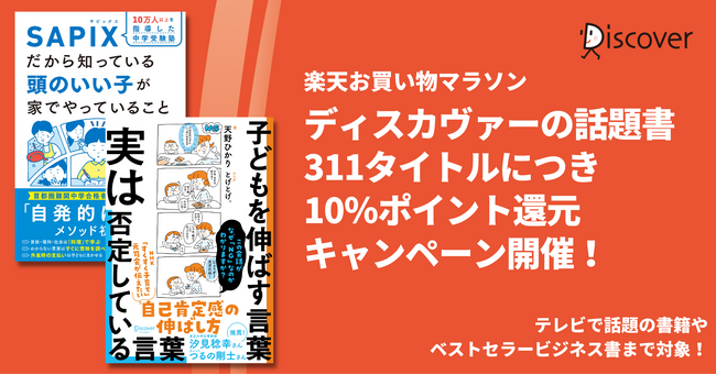 7/4より、楽天ブックスにて、ディスカヴァーの話題作311タイトルにつき、10%ポイント還元キャンペーンを開催します。