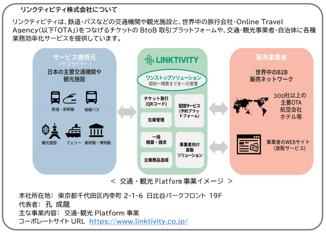 東京地下鉄株式会社(本社:東京都台東区、代表取締役社長:山村 明義、以下「東京メトロ」)と交通・観光プラットフォーム事業を展開するリンクティビティ株式会社(本社:東京都千代田区、代表取締役:孔 成龍、以下「リンクティビティ」)とは、資本業務提携を締結します。持分法適用(出資比率20%)となる資本業務提携により交通・観光プラットフォーム事業を共に進めていくことは、鉄道業界で初めての取組みになります。