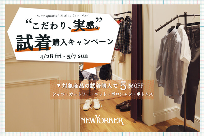 衣料事業の主力ブランドNEWYORKERを中心とした衣料服飾品の企画、製造、販売、不動産の売買、仲介、賃貸管理を行っている株式会社ダイドーフォワード(本社:東京都千代田区/代表取締役:萩原 秀敏)は、4月28日(金)~5月7日(日)10日間、全国のニューヨーカー メンズショップにて「試着購入キャンペーン」を開催いたします。