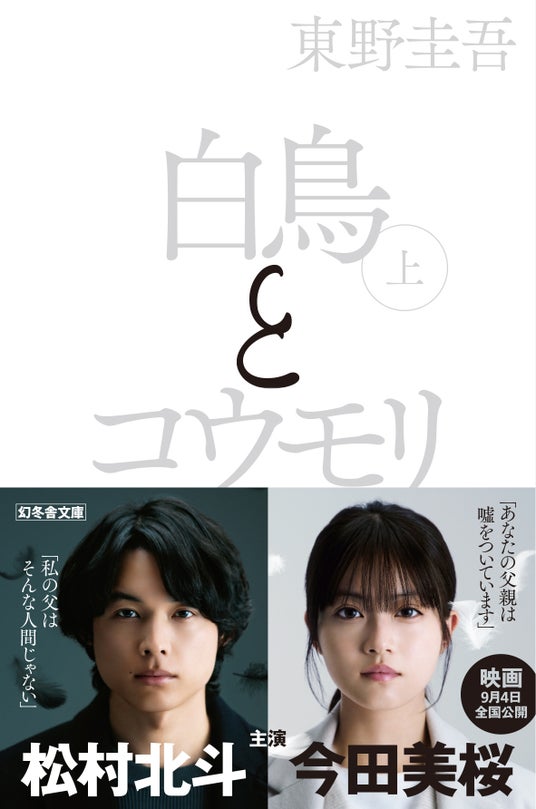 シリーズ累計発行部数 157万部突破の東野圭吾氏による、新たなる最高傑作『白鳥とコウモリ』 (幻冬舎文庫)が、松村北斗氏と今田美桜氏の W 主演により実写映画化。9 月 4 日(金)の全国公開に先駆け、期間限定映画化白黒新カバー&新帯を展開します。