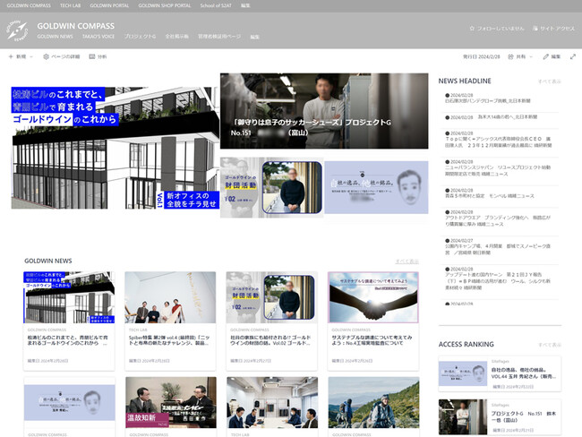 「Share Pointでここまでうまく作れるんだ!」と驚嘆しました。Share Pointを使った社内報はイントラ機能との連携や運営コストの圧縮など利点が大きいものの、表現の制約や読者とのコミュニケーションにおいて課題を感じることが少なくありません。しかし、”GOLDWIN COMPASS”はそんなイメージを大きく覆す社内報です。