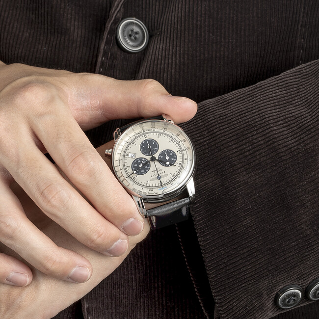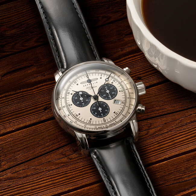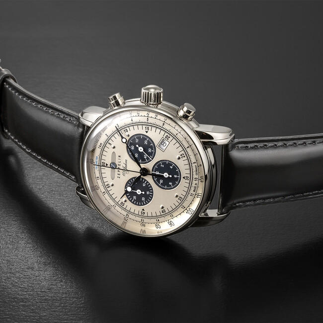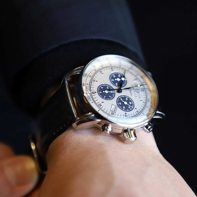 ドイツの歴史的飛行船「ZEPPELIN」の100周年を記念した『100周年記念シリーズ 日本限定クロノグラフ』。新作「7686-5」は、コードバンレザーベルトを合わせた限定モデルです。