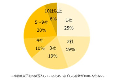現在登録している派遣会社の数を伺いました。74%と多くの方が複数社登録していることがわかりました(2社:19%、3社:19%、4社:10%、5~9社:20%、10社以上:6%)。