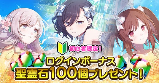 7月31日(木)~8月28日(木)までの期間中、初めましてのマスターさん限定ログインボーナスとして、ガチャなどに使用できる聖霊石を100個プレゼントいたします。