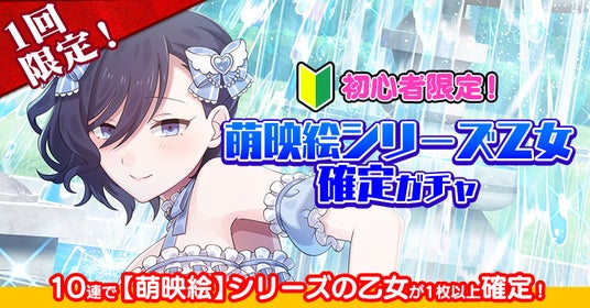 初めましてのマスターさんを対象に「水着撮影会乙女ステップアップガチャ」でも登場する【萌映絵】シリーズの乙女が10連で1枚以上確定する「初心者限定萌映絵シリーズ乙女確定ガチャ」も開催中です。