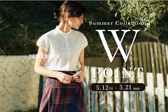 衣料事業の主力ブランドNEWYORKERを中心とした衣料服飾品の企画、製造、販売、不動産の売買、仲介、賃貸管理を行っている株式会社ダイドーフォワード(本社:東京都千代田区/代表取締役:萩原 秀敏)は5月12日(金)~21日(日)10日間、全国のニューヨーカー ウィメンズショップにて「Summer Collection 2023 Wポイントフェア」を開催いたします。