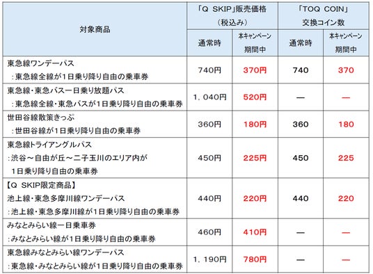 (1)キャンペーン名称:「Q SKIP」東急線乗り放題乗車券半額キャンペーン