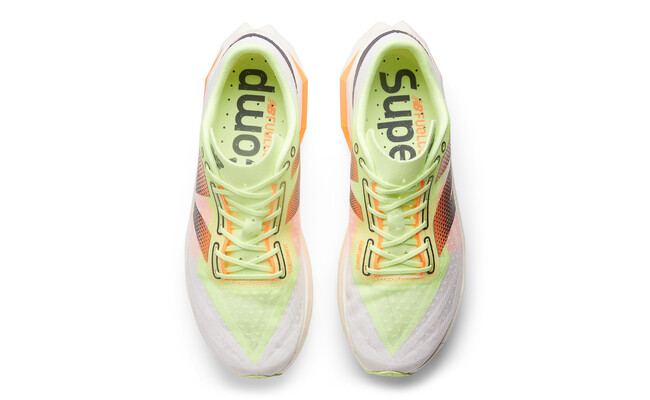 「前作と比較し、コンパウンドにはPEBAを採用。より反発弾性・エネルギーリターンの向上を実現させた新たなFuelCellコンパウンドは、前への推進力を劇的にUP。よりスピード感を意識したソール形状と合わさり、高速レースにも最適な、スピードに乗りやすい一足に。