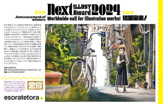 パイ インターナショナルが発行する雑誌「季刊エス」「SS(スモールエス)」には、創刊以来、多くのイラストが投稿されてきました。過去に作品を投稿してくれた人たちは、その後にイラスト、漫画、アニメ、ゲーム業界で活躍されています。その作品群は、日本で発展を遂げた漫画、アニメ、ゲーム由来のビジュアルで、これが世界中に広がり、今では海外の人たちも日本風の「イラスト」を楽しみ、自分たちでも描くようになったと感じます。私たちは2023年に『COMICUP×S magazineイラストコンテスト』を日本と中国の合同で開催し、中国からの投稿作品でその発展を目の当たりにしました。現在は「Next ILLUST Award」として規模を広げて、日本・中国・英語圏から作品を募り、全世界の人が参加できるコンテストを開催しています。2024年は色鉛筆で臨場感のある風景を描いたesoratetoraさん、中国の伝統的衣装の美人画を描かれた徐从晖さん、あいくるしい森の動物を描かれた_grumpypotatoさんたちが受賞されました。