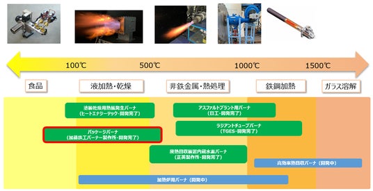 *1:燃焼空気ブロアやガス遮断弁などの制御機器まで含めてパッケージ化したバーナ、食品加工から非鉄金属まで幅広い温度帯に対応しています。