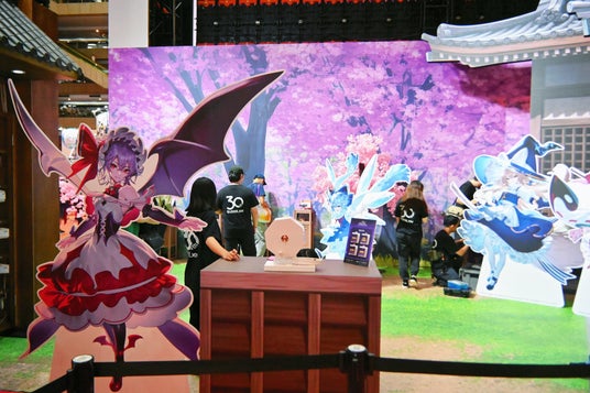 7月24日(木)より台北市で開催された台湾最大級の漫画・アニメのイベント「漫画博覧会」では、『ゲンリプ』が神社風の装飾を施したブースで出展。鈴を鳴らす体験や、霊夢・魔理沙のコスプレイヤーとの撮影コーナー、試遊台など、多彩な企画が来場者から好評を博しました。午前中にはダンサーによるステージイベントも実施され、会場を盛り上げました。7月26日(土)からオリジナルグッズの販売も行われました。