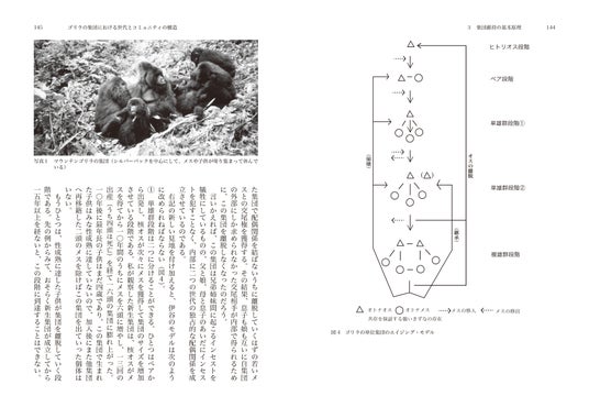 「3 集団維持の基本原理」章、「ゴリラの集団における世代とコミュニティの構造」(山極壽一)より。